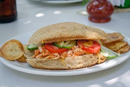 The best thing about the food served this weekend was by far the homemade bread. It was a whole grain bread with whole peanuts. Peanuts in the bread isn’t something I expected to see, but it definitely added an amazing flavor and texture. The sandwiches were amazing (fresh fish from the lake lightly battered and fried) and so were the enchiladas (Nicaragua-style). And talk about cheap food, the sandwiches come with homemade potato chips for $3.50, which I’m told is pretty expensive for Nicaragua.